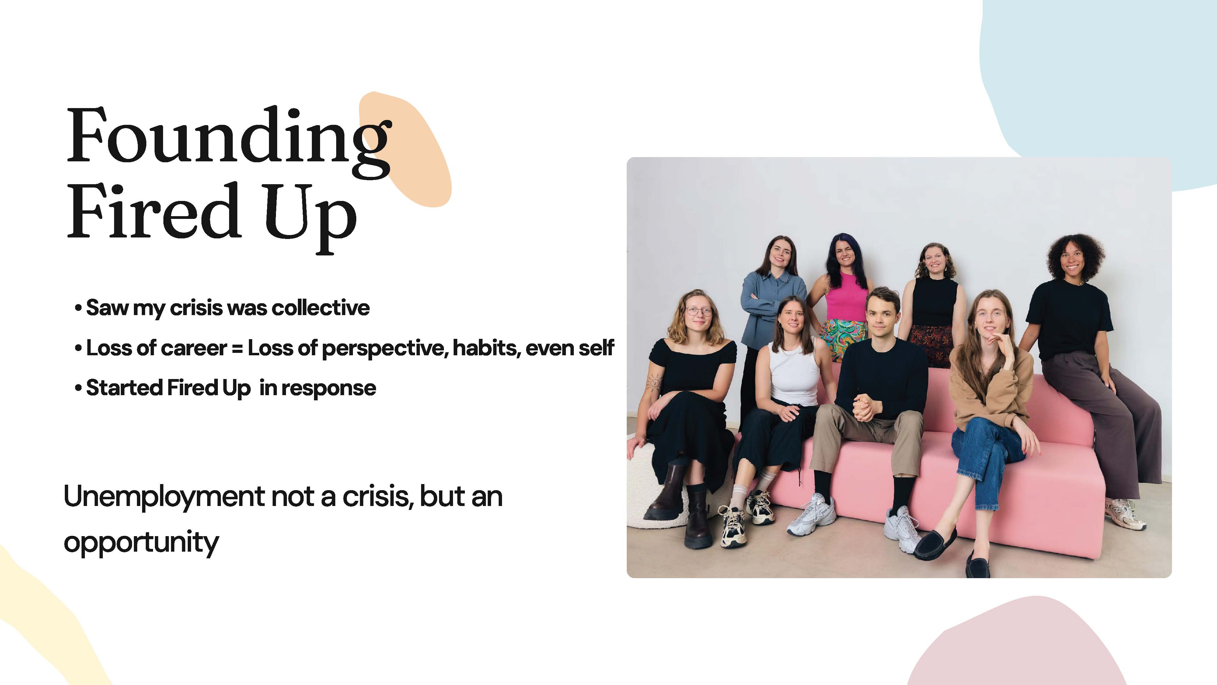 The presentation created a narrative that started with Clara's own personal story: her dissatisfaction with the traditional job market, her awareness of this dissatisfaction also being present in many of her peers, to founding Fired Up Space in response.